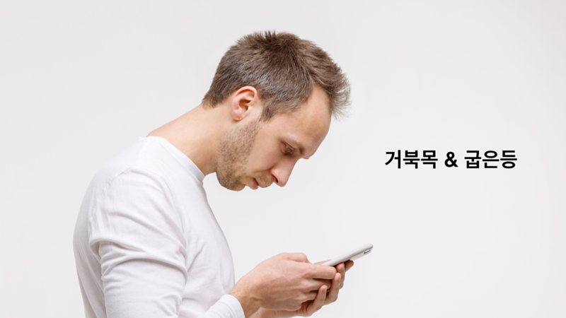 목 신경에 이상이 생기면 어깨나 팔 쪽에 이상 증상이 생길 뿐만 아니라 심각할 경우 감각신경이 마비되면서 뇌졸중과 유사한 증상도 나타날 수 있습니다. 그만큼 목의 역할은 중요합니다. 굽은 등은 목에도 영향을 미칩니다. 거북목은 굽은 등과 긴밀히 연결되어 있습니다.