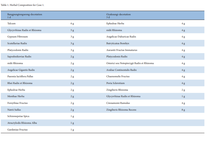 *1번 허리디스크 환자에게 사용된 한약처방 방풍통성산과 오약순기산