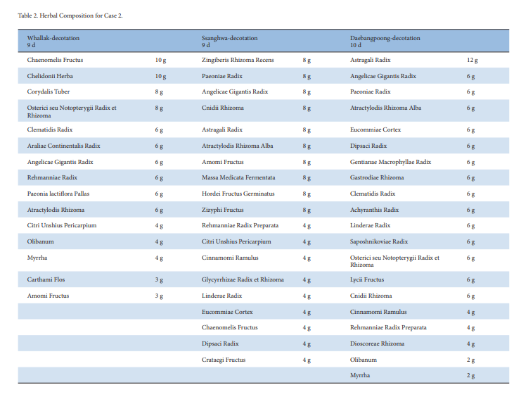 *2번 환자의 한약처방, 활락탕, 쌍화탕, 대방풍탕