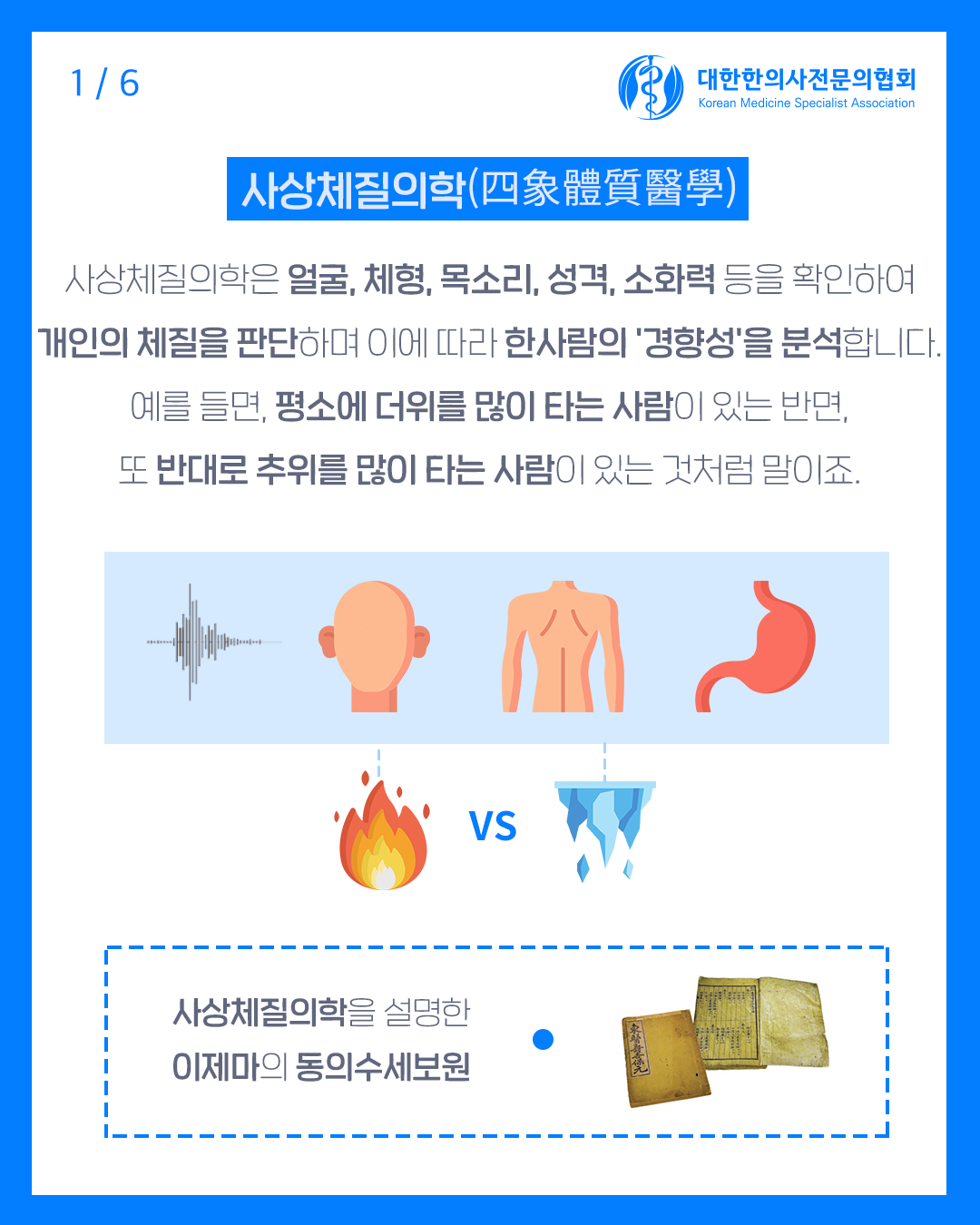 오늘은 사상체질에 대해 전문의협회에서 만들어진 자료를 소개해드릴게요.
