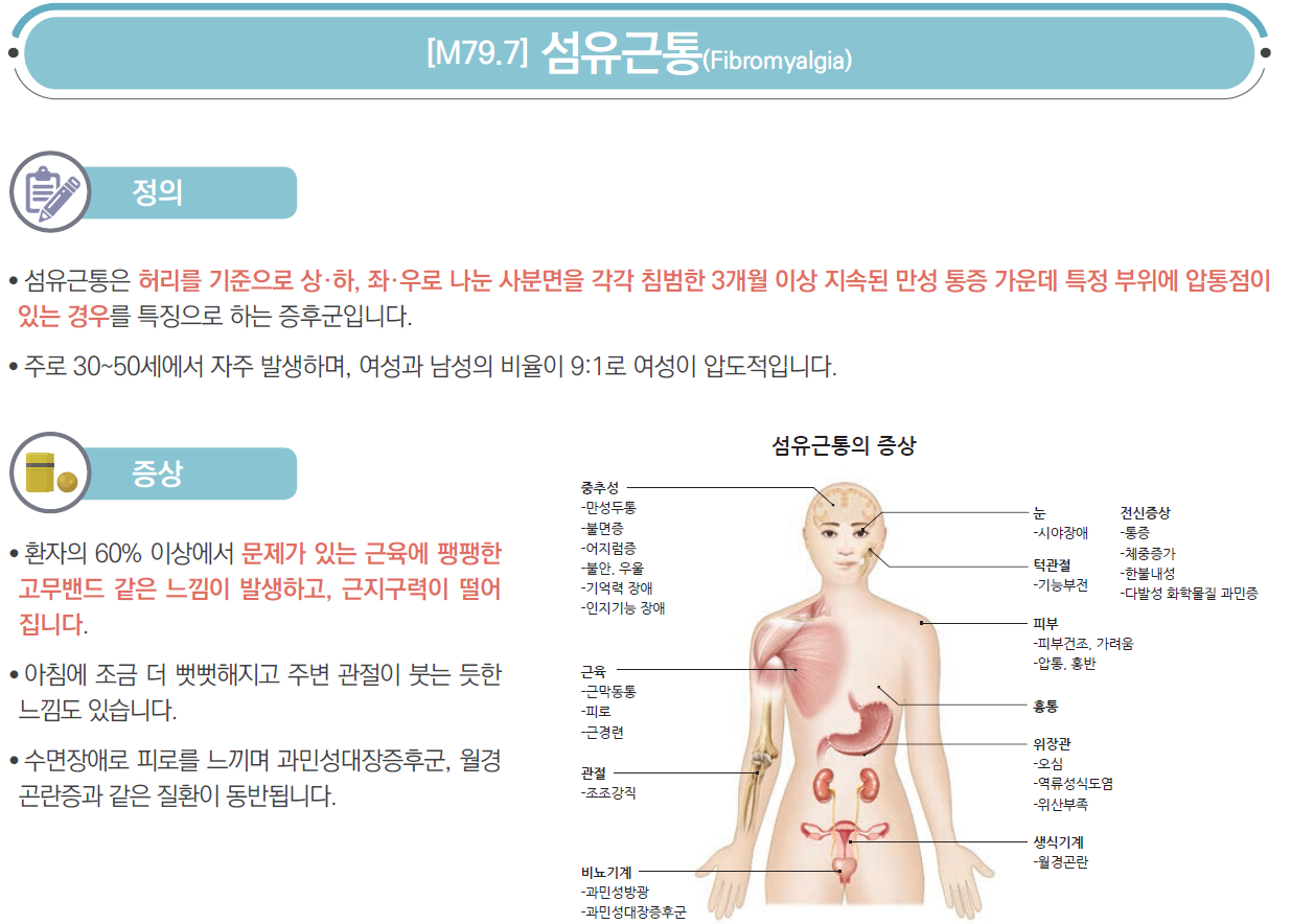 오늘은 현대 난치질환 중 하나인 섬유근통에 대해 알아보겠습니다.