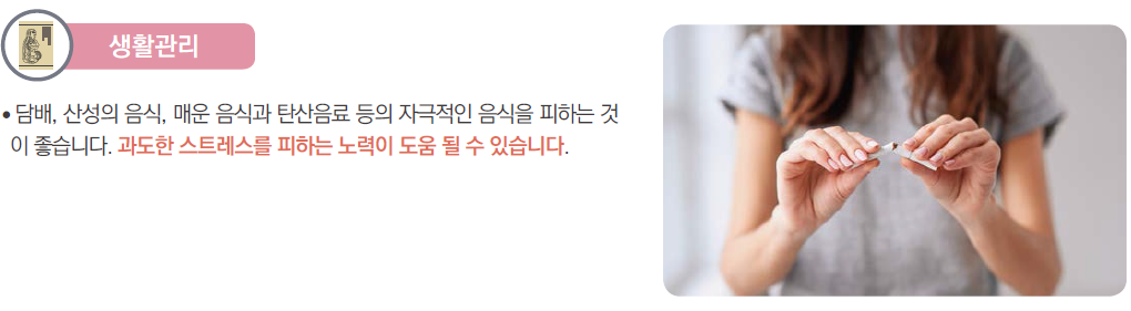구강작열감증후군의 통증을 완화하려면 차가운 음료를 마시거나 얼음 조각을 먹거나 무설탕 껌을 씹으면 도움이 될 수 있습니다. 또한 아래와같은 자극성 물질을 피하시기 바랍니다.