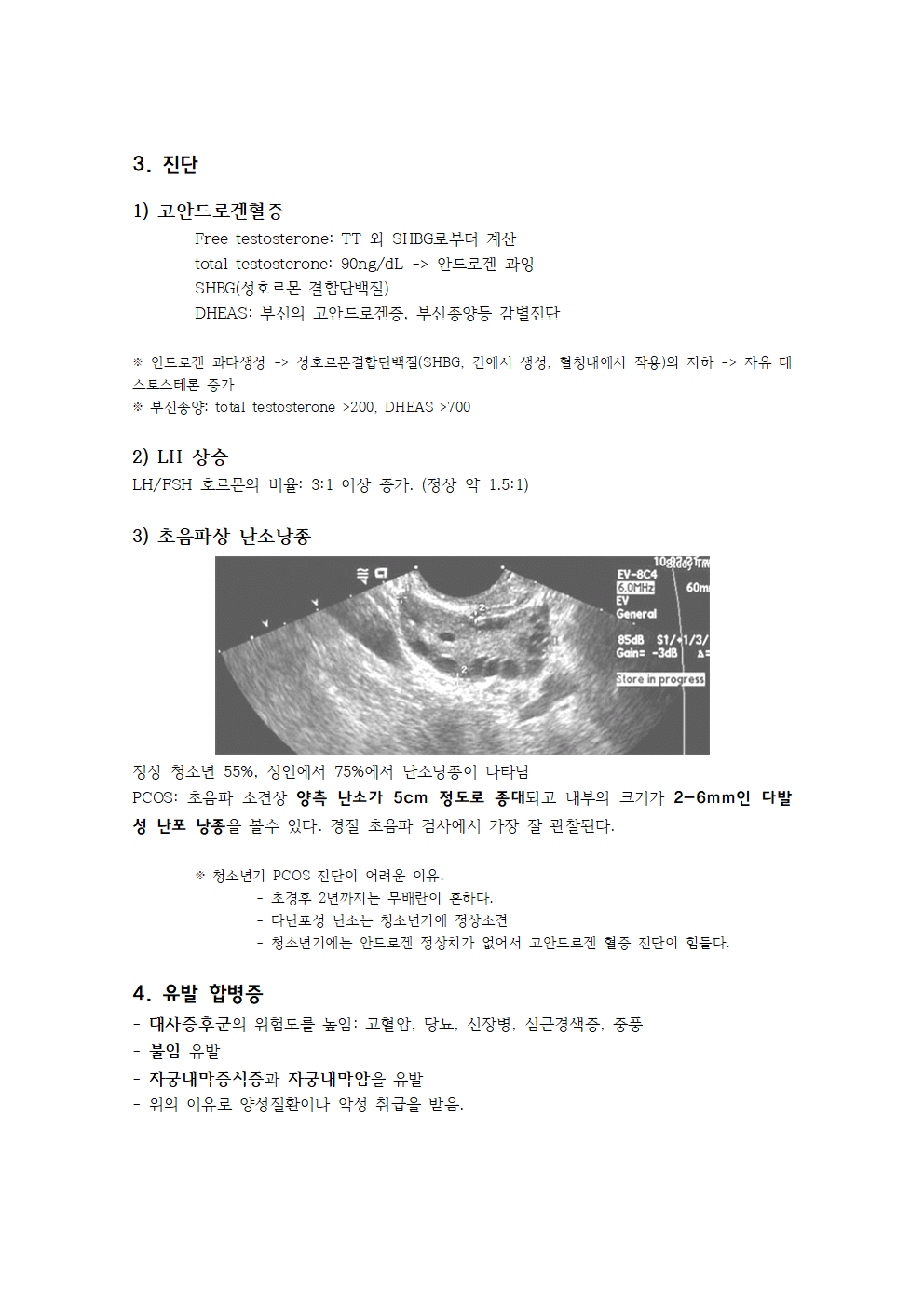다낭성 난소 증후군은 시상하부-뇌하수체-난소의 호르몬 이상으로 난소의 남성 호르몬 분비가 증가하여 배란이 잘 이루어지지 않아 월경 불순, 다모증, 비만, 불임이 발생하고, 장기적으로 대사 증후군과 연관되는 질환을 의미합니다. 이 질환에는 인슐린 저항성 또는 고인슐린혈증이 동반될 수 있습니다.