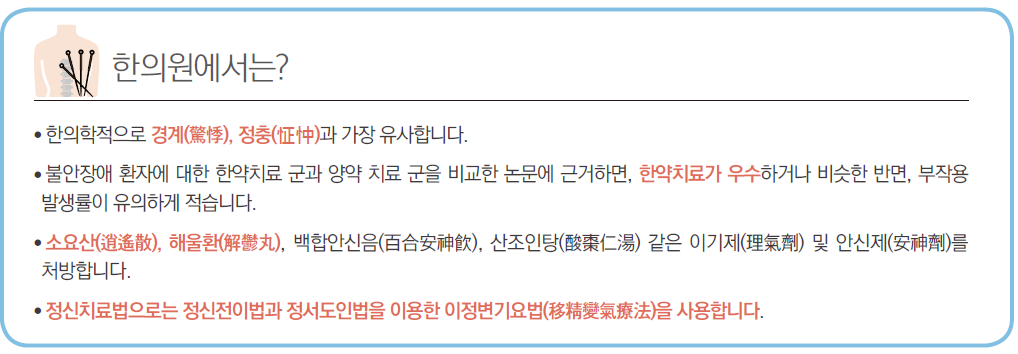 또한 침치료가 뇌의 스트레스 반응을 줄이며 흥분된 교감신경계를 안정시켜 불안증상을 개선하는데 도움을 줍니다.