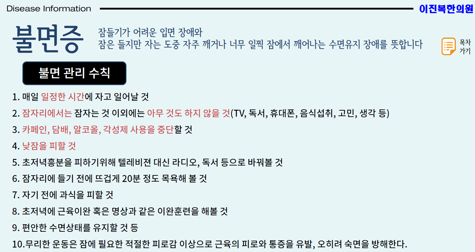 불면증 인지치료, 수면위생, 또는 숙면을 위한 이진복원장의 조언