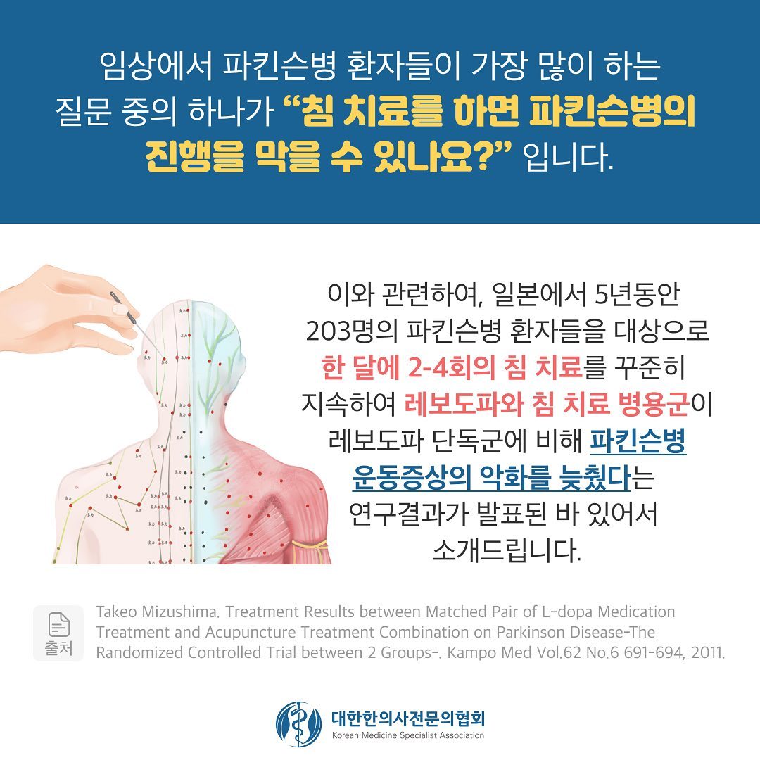 파킨슨병에 대한 침치료 연구에 대해 알아보겠습니다.