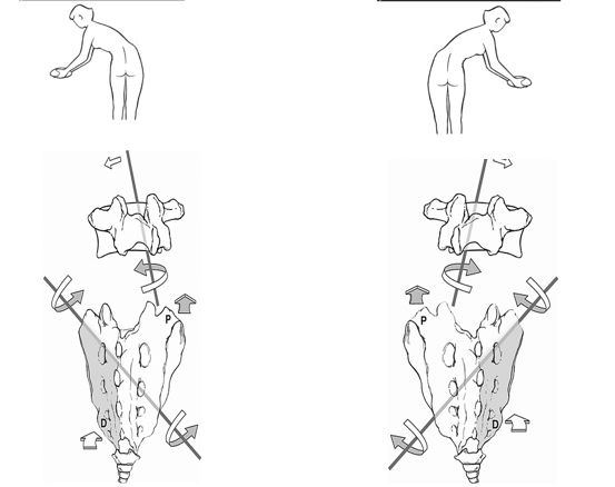 ▲ 척추움직임에 따른 천골의 3차원적 움직임