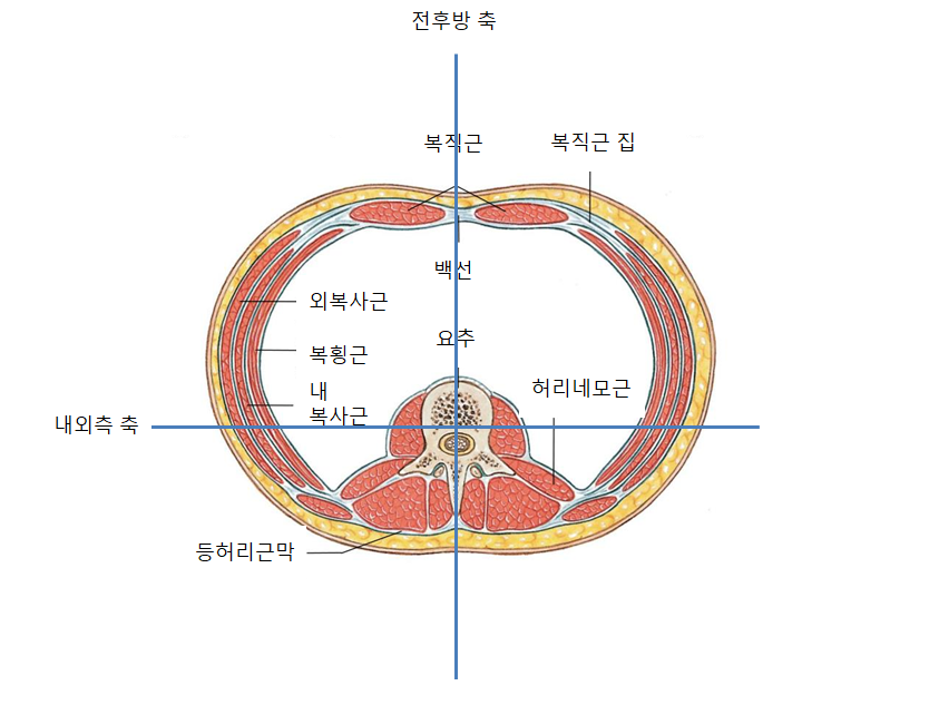 이러한 배의 근육들은 배속 장기들을 지지 및 보호하고, 가슴속과 배속 압력 상승을 통하여 안정성을 발휘하는 중요한 기능을 수행하고 있습니다. 이번 글에서는 몸통을 움직이고 안정시키는 운동학적 기능에 초점을 맞추어 보고자 합니다.