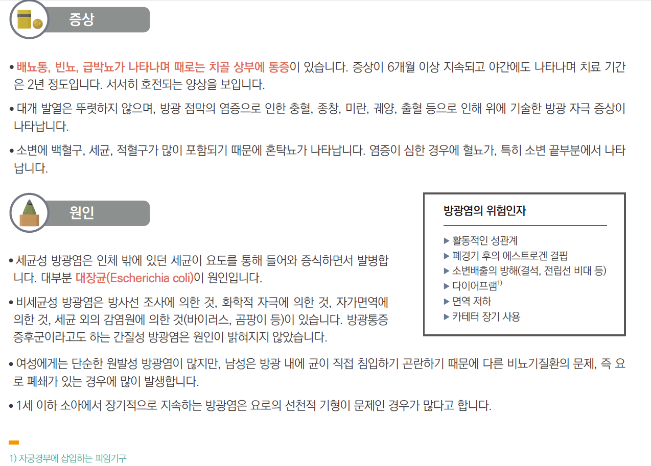 어르신 분들이 흔히 '오줌소태'라고 많이 말씀하시는 방광염에 대해 알아보겠습니다.
