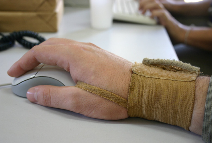 □ 컴퓨터 작업으로 인해 수근관증후군이 발생하였을 경우 손목을 압박하지 않도록 컴퓨터 사용 시 아래팔지지대를 사용합니다. 또한 손목 아래에 쿠션을 받쳐 주거나 컴퓨터 높이를 조정하여 손목 관절을 굽힘 상태로 오래 있지 않게 해야 합니다.