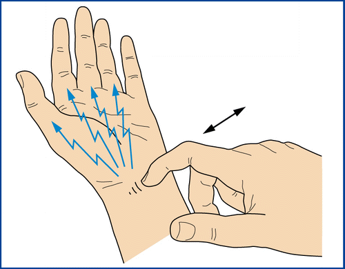 밤에 잘때 감각이상을 호소하는 경우가 흔히 있으며, 심한 경우 잠에서 깨기도 합니다. 이때 손을 앞뒤로 털어주면서 흔들면 증상이 조금 호전되기도 합니다. 이를 의학용어로는 Flick sign 이라고도 합니다.