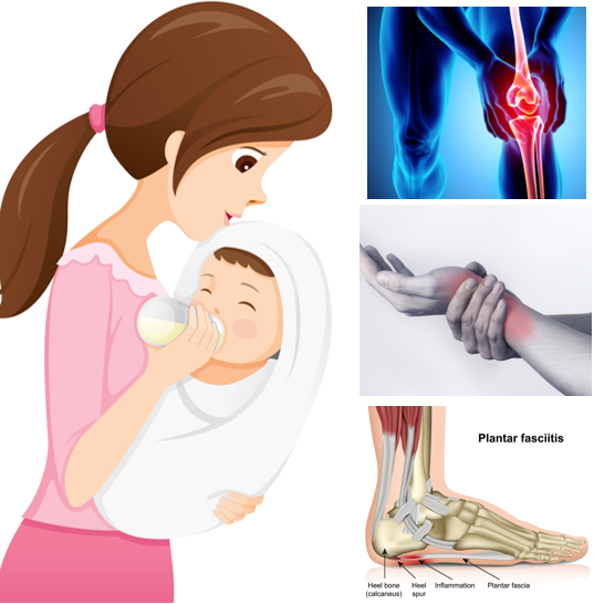 출산 후 발목이나 무릎 통증으로 고생하는 경우를 흔하게 접합니다. 출산 6개월까지 릴렉신이라는 호르몬 분비로 인해 산모의 인대와 근육은 약화되어 있기 쉽습니다. 만약 무리를 하게 되면 약화된 인대로 인해 관절통증이 나타나기 쉽죠.
