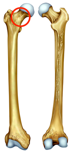 전방에서 바라볼 때 대퇴골두는 대퇴골에 대해 120~135도의 각도를 이루고 있습니다. 아래에서 바라볼 때는 Femoral condyle에 대한 대퇴골두가 전방으로 12도 정도의 각도를 이룹니다.