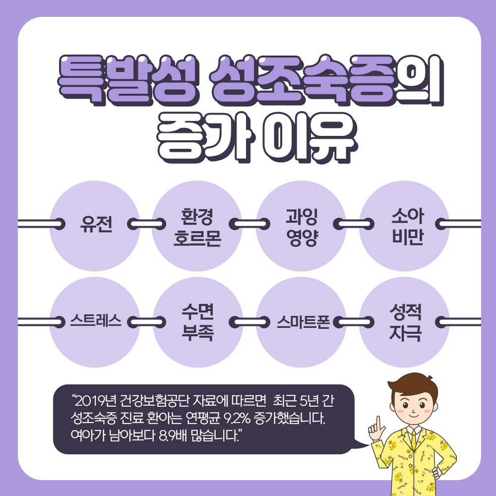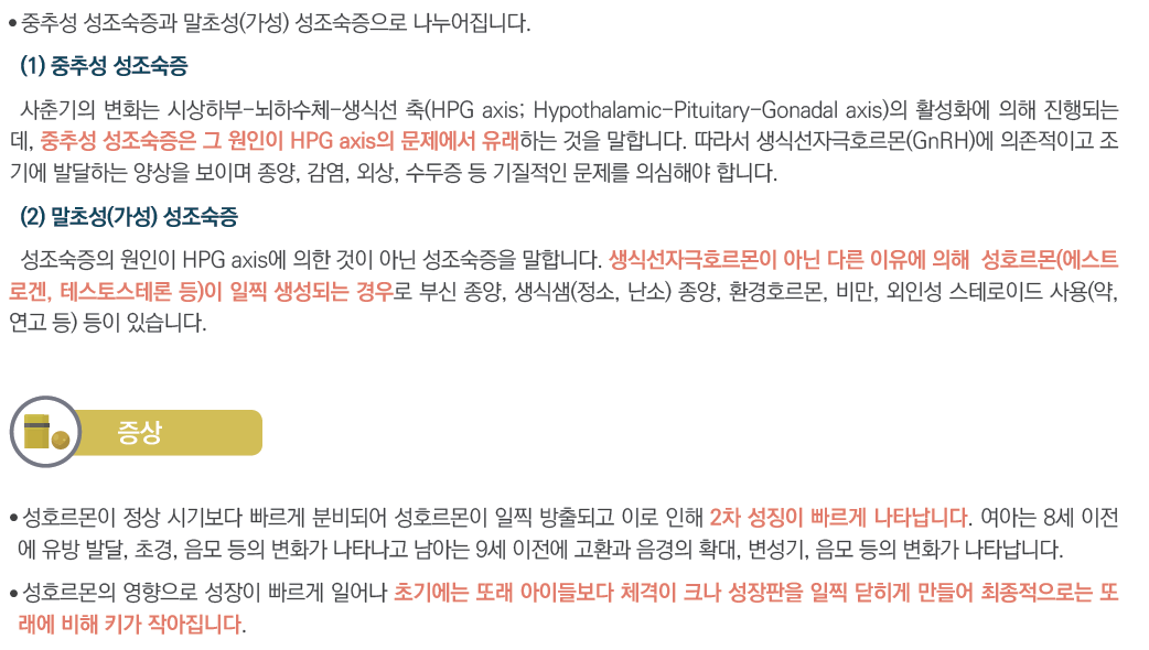 우리 아이의 증상이 성조숙증과 관계가 있는 것인지, 그렇다면 증상을 일으키는 원인은 무엇인지!!