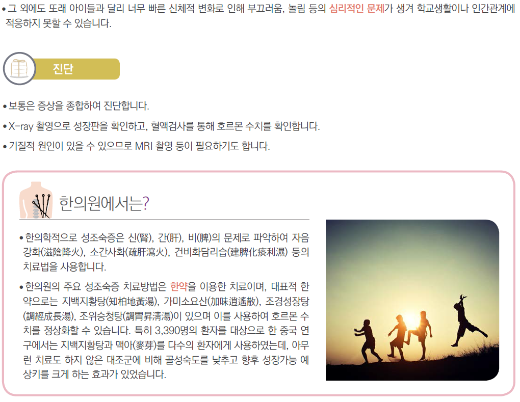 성조숙증은 반드시 한의원에 직접 오셔서 검사 및 상담을 받으시는 것이 좋습니다.