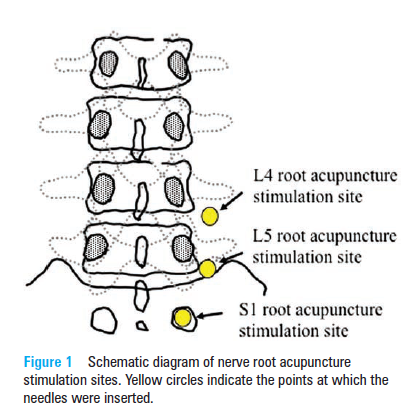 (출처 : Spinal nerve root electroacupuncture for symptomatic treatment of lumbar spinal canal stenosis unresponsive to standard acupuncture:a prospective case series. Motohiro Inoue외. Acupunct Med 2012;30:103-108)