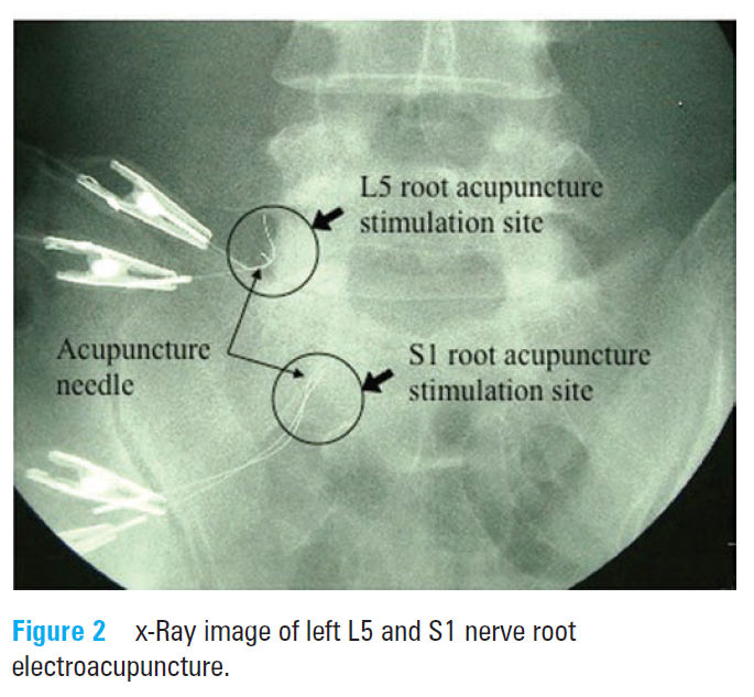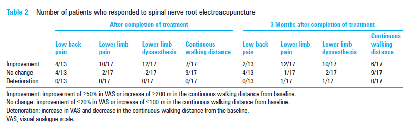 (출처 : Spinal nerve root electroacupuncture for symptomatic treatment of lumbar spinal canal stenosis unresponsive to standard acupuncture:a prospective case series. Motohiro Inoue외. Acupunct Med 2012;30:103-108)
