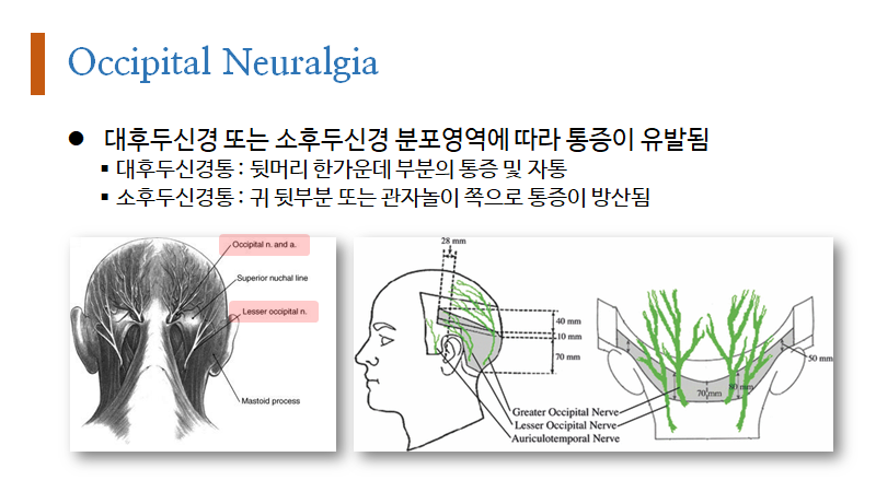 그렇지만 이론적으로 봤을 때 후두신경의 종류에 따라 세분화하여 신경분지 별로 통증양상을 나누어 볼수 있습니다.