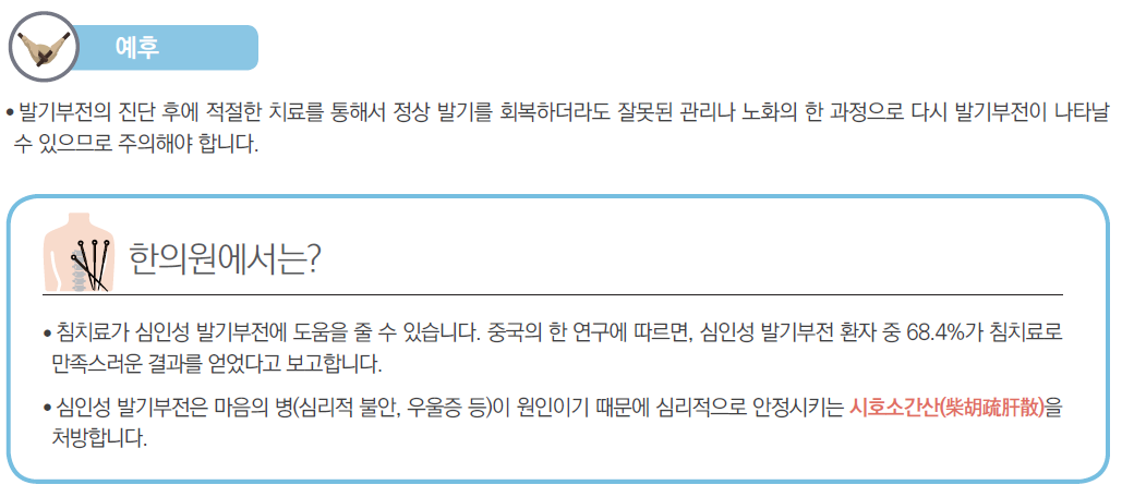 특히 치료와 함께 스트레스 해소를 위해 가벼운 운동, 음악 듣기, 8시간 이상의 수면 등 생활에서 병행하면 좋은 활동 등을 적극적으로 실천해보는 것이 좋습니다.