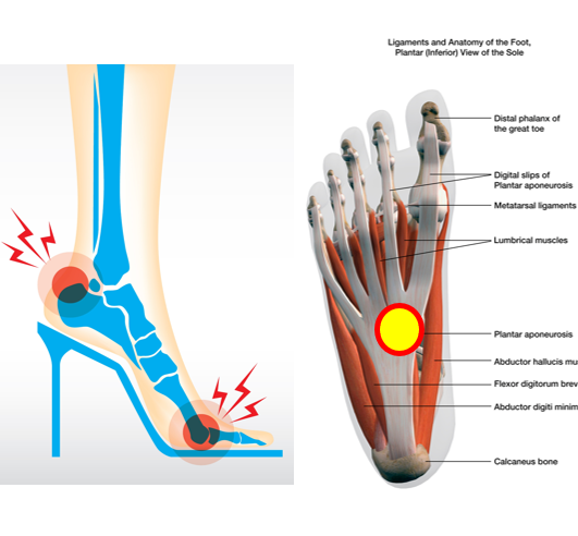 발바닥 신경은 단지굴근(Flexor digitorum brevis)의 과긴장에 의해 포착되기 쉽습니다. 단지굴근은 종골 내측돌기에서 시작하여 2,3,4,5번째 발가락의 middle phalanx의 양측 면에 정지합니다. 발가락 굴곡시키는 기능을 하죠. 단지굴근의 내측 부위가 과도하게 긴장하면 1,2,3번째 발가락과 4번째 발가락 내측에 이상감각을 표현할 수 있습니다. 단지굴근의 과긴장은 발가락을 과신전한 상태가 오랜 시간 지속되거나 반복적으로 강한 과신전 동작을 하게 되면 발생할 수 있습니다.