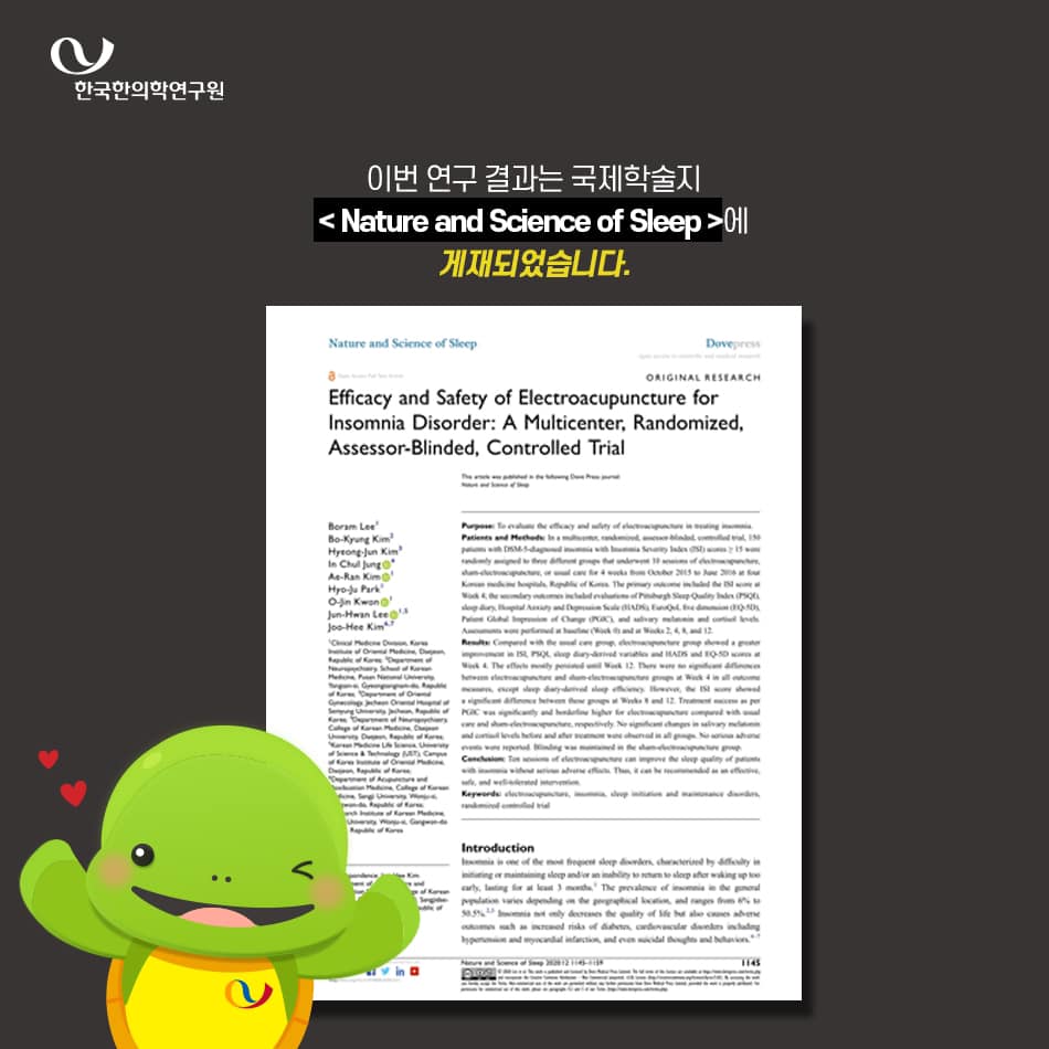 한의학연구원에서 나온 불면증의 전침치료 논문입니다.
