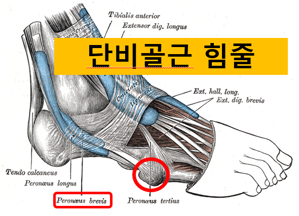 단비골근(Peroneus brevis)은 발목 바로 위에서부터 5번째 중족골 기저부에 붙어 있는 자그마한 근육입니다. 작다고 무시할 수 없는 근육입니다.