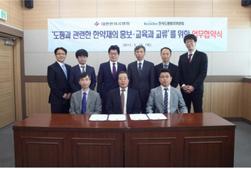 2017년 5월 18일 대한한의사협회 박완수 수석부회장님과 진영수 한국도핑방지위원회 위원장님, 송경송 스포츠한의학회 회장님이 모인 가운데 대한한의사협회와 한국도핑방지위원회(KADA)가 한의학과 도핑에 대한 정보를 효과적으로 홍보, 교육하기 위한 업무협약식을 진행하였습니다. 원래는 학회와 KADA 간 업무협약을 맺으려 하였으나, 대표성이 있는 한의사협회와 업무협약을 맺고 협약 내용의 효율적 추진을 위해 한의협 2인(대한스포츠한의학회 1인 포함), 한국도핑방지위원회 2인으로 구성된 업무협의회를 구성키로 합의하게 된 것이었습니다.