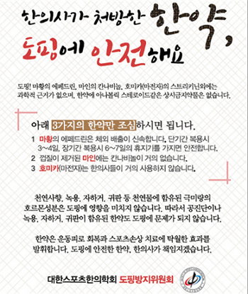 윤성중, 제정진, 이훈, 등. 2015년 한약의 도핑관리. 대한스포츠한의학회지. 2015; 15(1): 1-9.