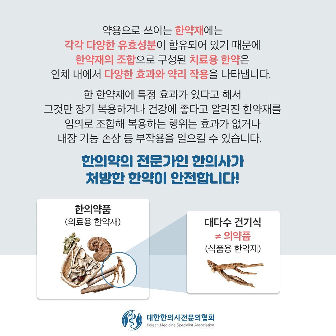 전문적 지식을 가진 한의사분들과 상의하에 드세요.
