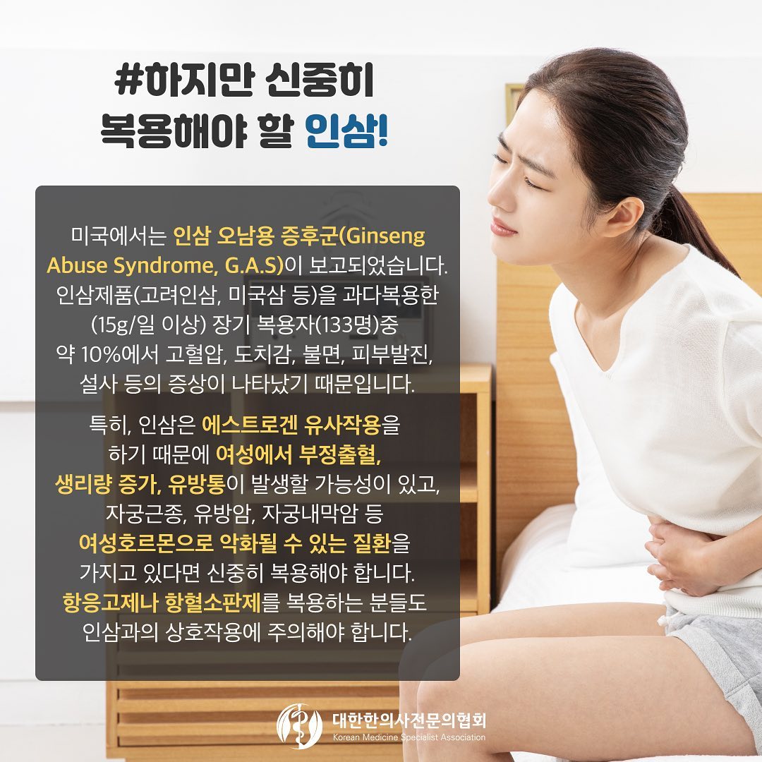 인삼도 잘 못 복용하면 많은 부작용을 유발합니다.