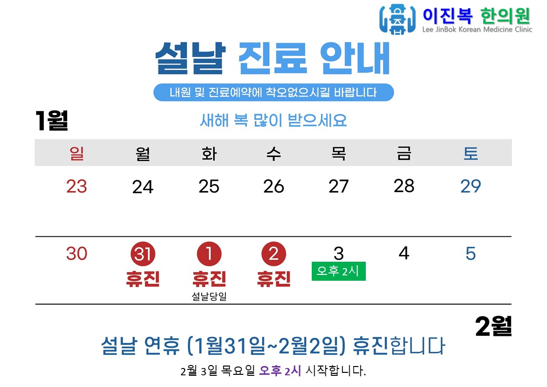 2월 3일 목요일 오후 2시 진료 시작합니다.