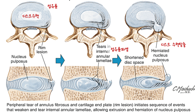 허리 주변의 인대나 근육이 삐끗하는 요추염좌와는 다른 섬유륜 파열(디스크)에 대해서 알아 보겠습니다.